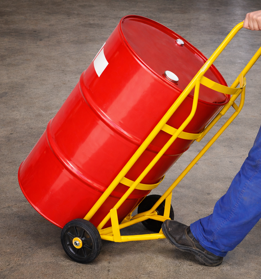 São muitos os operários que aprendem a trabalhar com esses recipientes de forma manual. Assim, para transportar de um local a outro, é comum inclinar o recipiente e “girar” o tambor ou a bombona, ou até mesmo deitar o tambor no chão e rolá-lo. Citamos essas técnicas aqui justamente para deixar algo bem claro: isso não deve ser feito. Existem diversos problemas que podem decorrer desse tipo de prática.