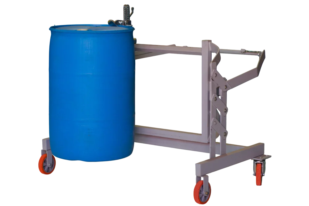 Com o PI-01, é possível tranferir tambores de um pallet para outro retidando de qualquer posição no pallet, seja nas laterais ou no centro, sem esforço físico. Isso é facilitado por um mecanismo de catraca que trava e mantém o tambor suspenso durante a operação.